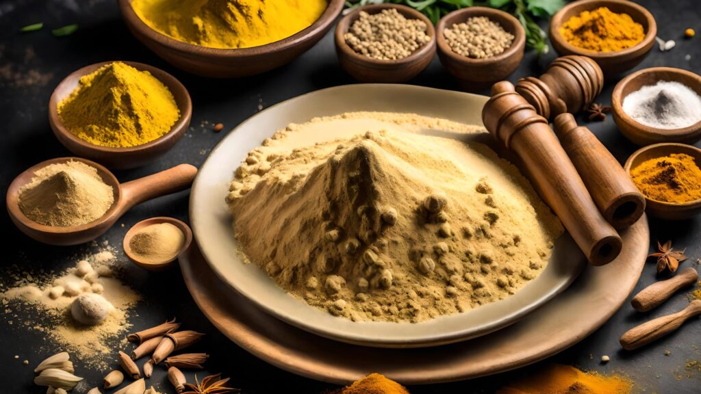 - Take 1 tablespoon each of dried ginger powder, long pepper powder, curry leaves powder, ajwain powder, black pepper powder, cumin powder, and asafoetida (heeng) powder.