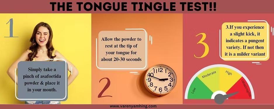 Don’t settle for half the picture, embrace the full sensory evaluation to unlock the true potential of Asafoetida using the Tongue Tingle Test!!